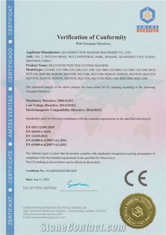 The supplier's company certificate has been verified by StoneContact.Com.